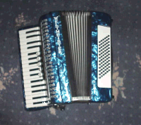 All the accordion voicings are immaculate and respond to my touch and bellows control just as a conventional accordion would and I am free to play instantly, with no messy connections to an amp or mains electricity, just as on a conventional accordion. The only sign that it is in fact a highly advanced digital instrument is a tiny blue lcd style pilot light when I am using it. If you would like to know more about this remarkable instrument please click here. for the Roland website. The Picture below shows my beautiful Weltmeister traditional piano-accordion which I can also use. Being lighter this sometimes has advantages for extended or roving use